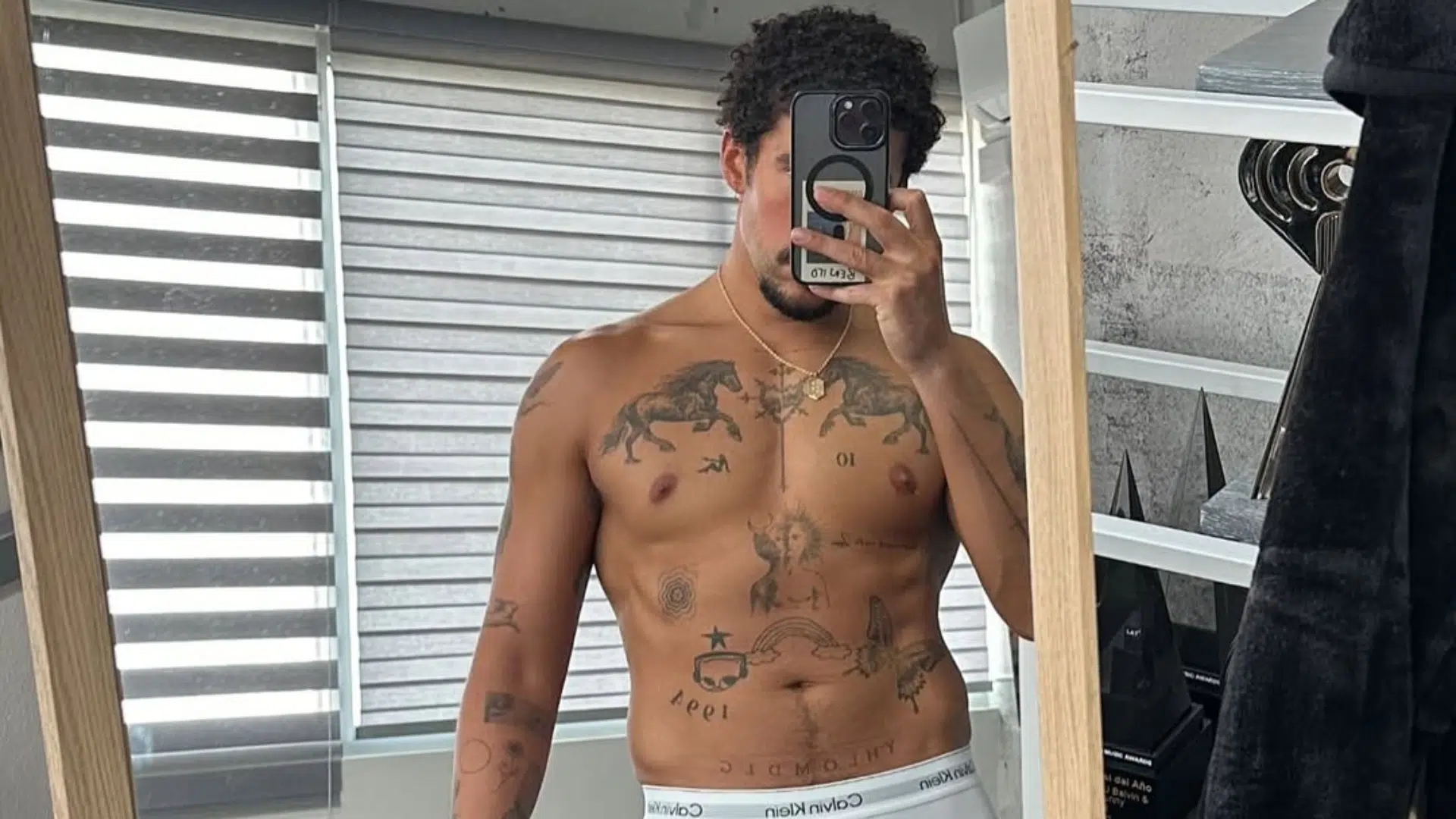 Bad Bunny knows exactly how to break the internet. This time, he stripped down to tight white Calvin Kleins. Snapping a seductive mirror selfie, Benito flexed his toned physique and inked torso while serving his trademark playful smirk. Honestly, Instagram wasn’t ready.
