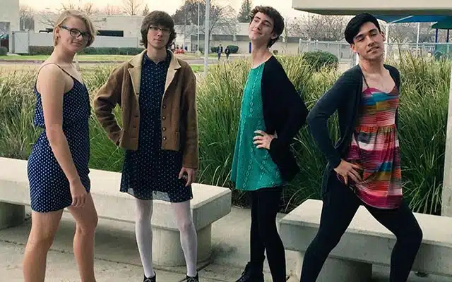 To protest the new code, the students flip flopped — the boys sported dresses and the girls kept it classy in collared shirts. Emma Sledd, a senior at Buchanan High School, told the Fresno Bee “Our district’s dress code should not favor or discriminate any gender. We believe everyone should be able to express themselves equally. A boy with long hair is no less of a hard worker than a girl with long hair.”