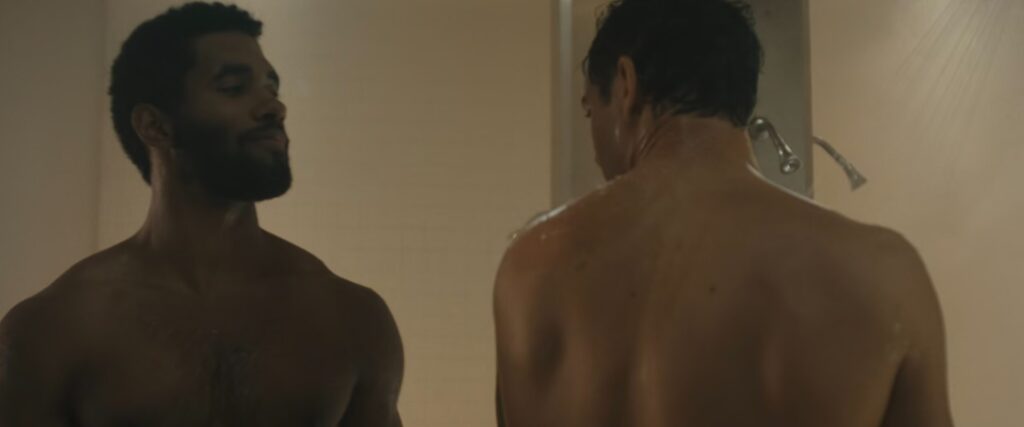 The scene is notably intimate, with Erik and Tony exchanging glances as they wash. While it’s unclear whether this moment is based on actual events, many viewers are asking whether Koch was wearing a prosthetic, as he appears fully nude in the scene.
