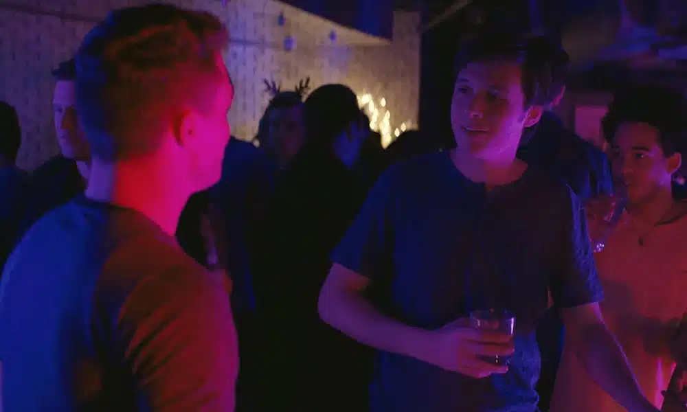 In the clip, characters Nick (Jorge Lendeborg Jr.) and Simon (Nick Robinson) visit a gay club.