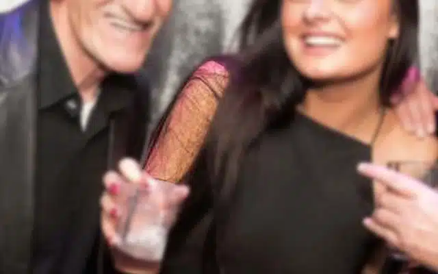 When we first glanced at the photo, it looked like the woman was holding a glass with a ridiculously long dong sticking out. Upon closer inspection, you can clearly see it’s just her arm.