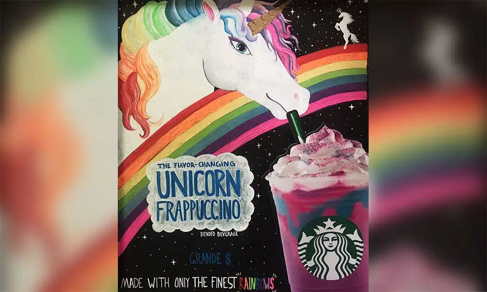 They continued, “Like its mythical namesake, the Unicorn Frappuccino blended crème comes with a bit of magic, starting as a purple beverage with swirls of blue and a first taste that is sweet and fruity. But give it a stir and its color changes to pink, and the flavor evolves to tangy and tart. The more swirl, the more the beverage’s color and flavors transform.”
