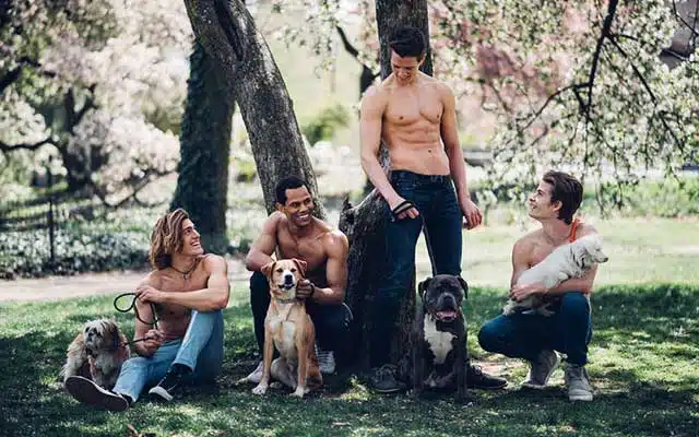 The photos feature models Alex Valley, Donovan Michaels, Harrison Shaul and Louis Solywoda with dogs “Vin Diesel,” “Colin,” “Jimmy Carter,” and “Jackson.” Photographer Taylor Miller captured every moment and the photos are adorable.