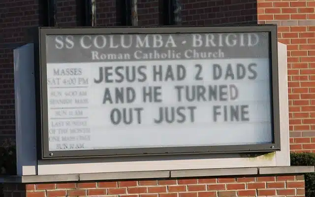 According to St. Columbia-Brigid Roman Catholic Church in Buffalo, New York “Jesus had two dads and he turned out just fine.”