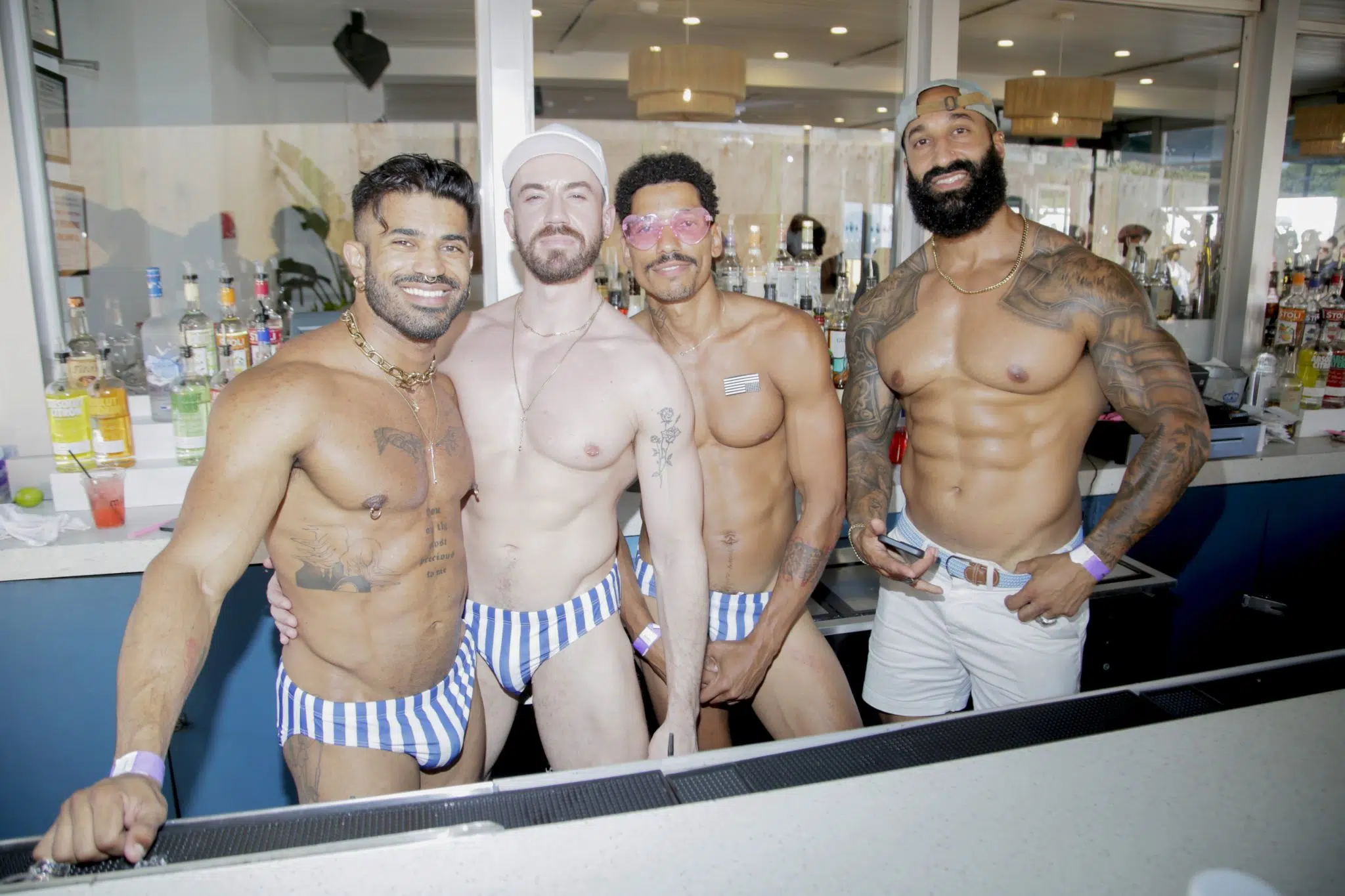 Tryst’s bartenders, each hotter than the last, served up icy drinks with devilish smirks and perfectly timed winks. Glistening in the Fire Island heat, these hunks made ordering a margarita feel like an erotic experience. And just when you thought it couldn’t get better, the go-go dancers hit the pole. Yes, there was a pole. Yes, someone climbed it. Yes, your jaw dropped.