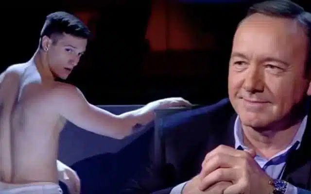 To his credit, these Italian stallions have some serious muscles and their choreography is on point (the twink with the over-the-shoulder side eye is smokin’). Although Spacey’s reactions have very little screen time, they’re priceless. You can tell he has a favorite or two ….
